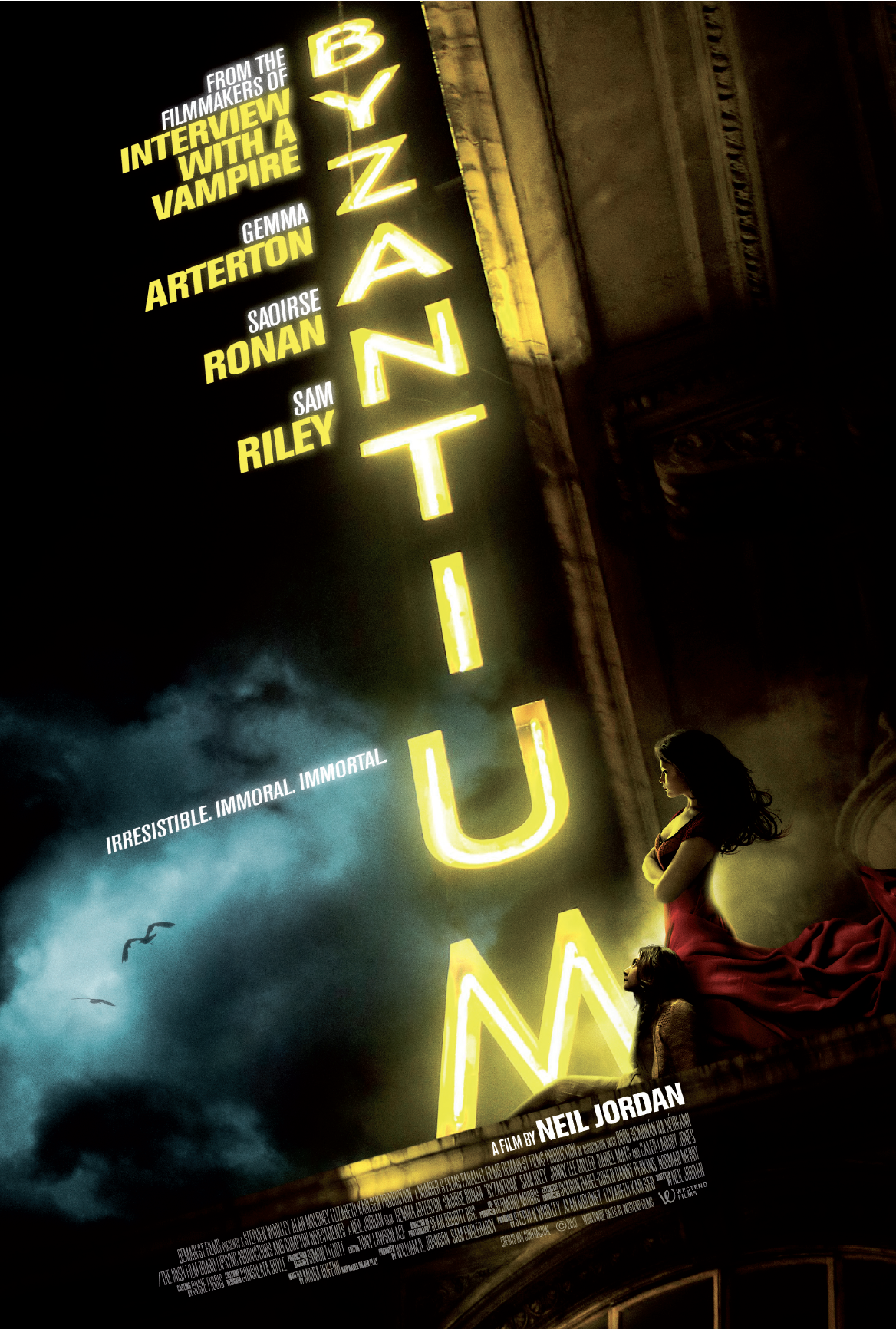Two mysterious women seek refuge in a run-down coastal resort. Clara (Gemma Arterton) meets lonely Noel (Daniel Mays), who provides shelter in his deserted guesthouse, Byzantium. Schoolgirl Eleanor "Ella" Webb (Saoirse Ronan) befriends Frank (Caleb Landry Jones) and tells him their lethal secret: They were born 200 years ago and survive on human blood. As knowledge of their secret spreads, their past catches up on them with deathly consequences.